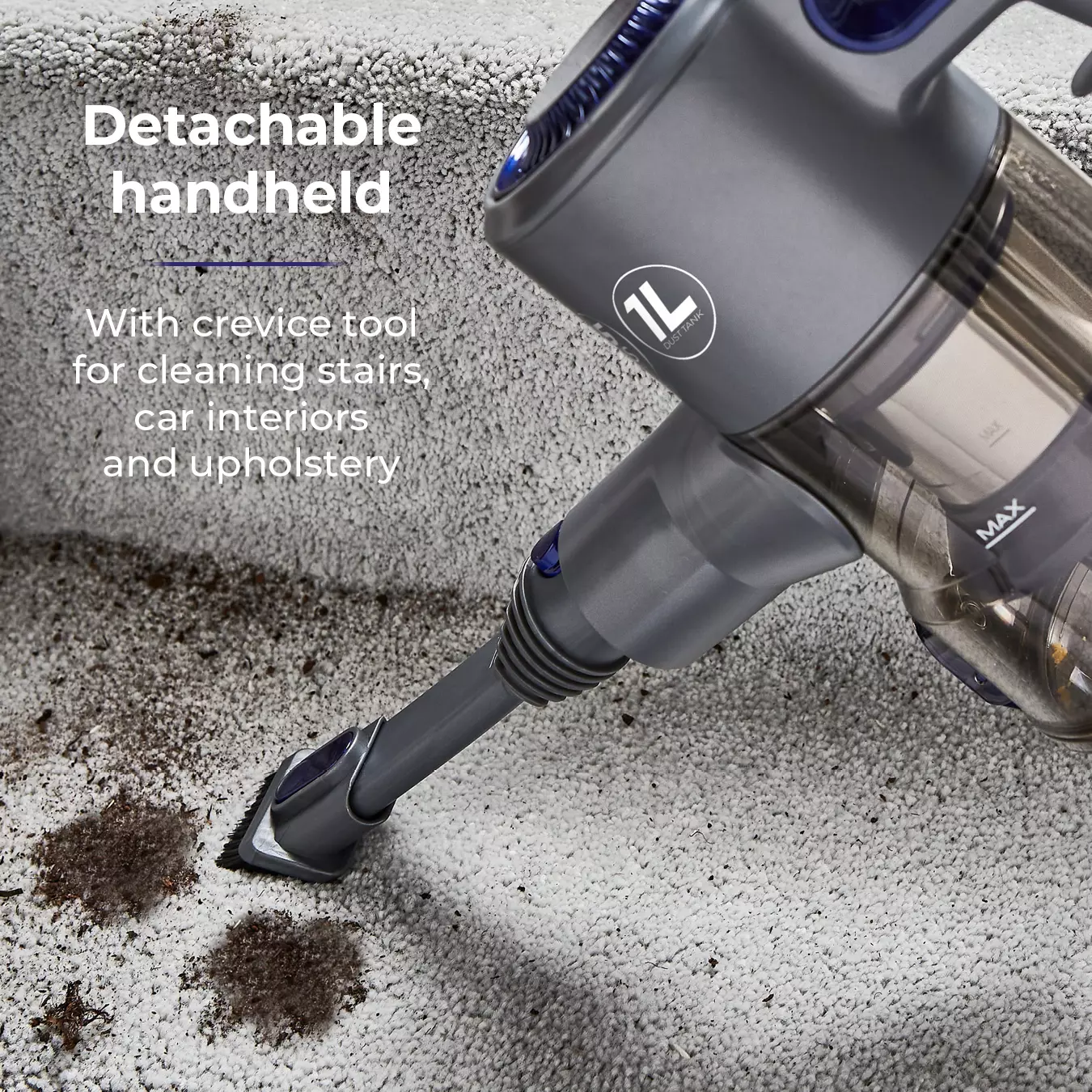 The cyclonic suction provides consistent airflow, effortlessly sucking up and breaking down dirt from all floor types for a thorough clean. Its ultra-efficient motorised floor head agitates dust and dirt leaving carpets and hard floors clean and fresh. It transforms into a handheld vacuum that is perfect for staircases, cars and upholstery. An anti-allergy HEPA filter removes 99.95% of fine particles from 0.3 microns, making it ideal for allergy sufferers. Its ultra lightweight 1.3kg body is easy to carry and move from room to room, for cleaning up high or down low anywhere in the home.