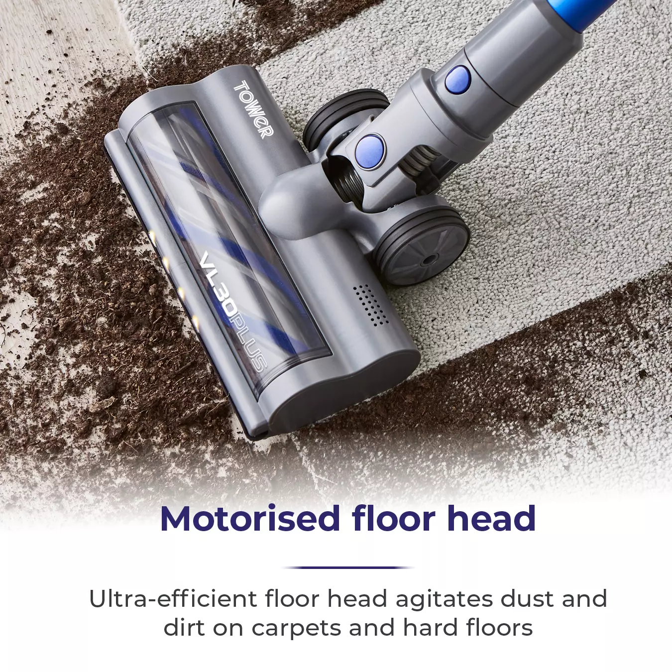 Ultra-efficient motorised floor head agitates dust and dirt leaving carpets and hard floors clean and fresh