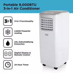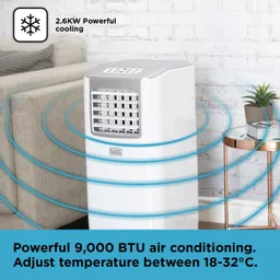 This versatile air conditioner has 3 operating modes to provide high-performance air conditioning, dehumidifying and cooling for large rooms up to 18m², for a comfortable, healthy home. Its powerful 9,000 BTU output provides Class A Energy Efficiency for low environmental impact.