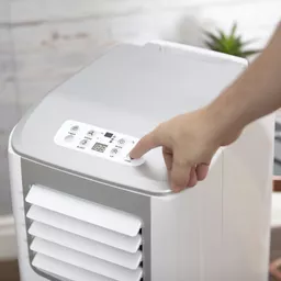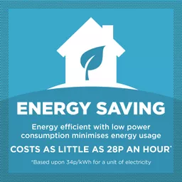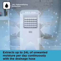 This versatile air conditioner has 3 operating modes to provide high-performance air conditioning, dehumidifying and cooling for large rooms up to 18m², for a comfortable, healthy home. Its powerful 9,000 BTU output provides high energy efficiency for low environmental impact, whilst providing optimum performance at low running costs. The two speed settings of high and low delivers a strong, cool breeze to ensure comfort in hot rooms. Its low cool setting products just 49dB to reduce noise disruption, ideal on warmer summer nights. High performance technology removes excess moisture to prevent damp, mould and mildew from forming in rooms, closets and wardrobes. The 0.5L water tank is designed to extract up to 24.8 litres of unwanted moisture per day, with a self-evaporating system to empty collected water. This air conditioner features easy to use controls to adjust speed, temperatures, modes and timer using the soft touch LED display or via remote control.