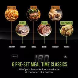 Make cooking simple with 6 one-touch cooking functions! Choose from 6 one-touch pre-sets to take the guesswork out of cooking, including Air Fry, Roast, Grill, Bake, Reheat and Keep Warm.