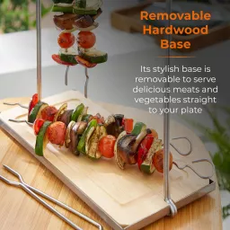 Simply release the food from your skewer onto the removable hardwood base, then remove and serve delicious meats and vegetables straight to your plate - also works as a handy chopping board for food prep