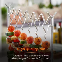 Sharp skewer edge slides through food easilySkewers can be hung on stand until ready to serve
