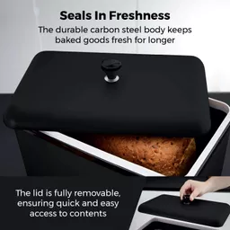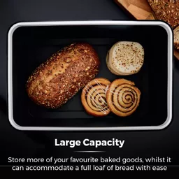 The large capacity ensures you can store more of your favourite baked goods, whilst it can easily accommodate a full loaf of bread with ease. The compact design ensures the bread bin takes up minimal space on your worktop