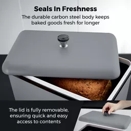 The large capacity ensures you can store more of your favourite baked goods, whilst it can easily accommodate a full loaf of bread with ease. The compact design ensures the bread bin takes up minimal space on your worktop