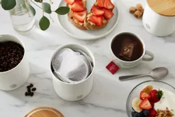 These three canisters are perfect for storing tea, coffee, and sugar. Made from durable carbon steel and featuring sturdy bamboo lids, they're built to keep your ingredients fresh for longer.