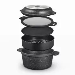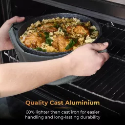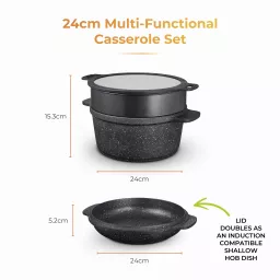 24cm Multi-functional Casserole set made from high quality, lightweight cast aluminium, giving the appearance of cast iron with much better manoeuvrability