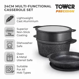 Precision 24cm Multi-Functional Casserole Set with Steamer Insert