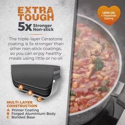 The multi-layer Cerastone coating is 5x stronger than other non-stick coatings, so you can enjoy healthy meals using little or no oil