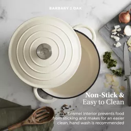 Barbary & Oak Round Cast Iron Casserole Pan with Durable Enamel Interior