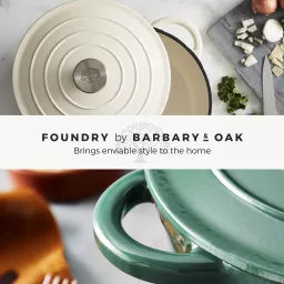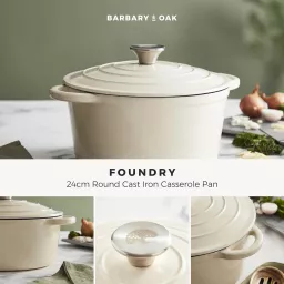 This Barbary & Oak 24cm Casserole Pan is a reliable cooking companion that any avid cook needs in their kitchen. The pan features quality cast iron that is durable and built to last. Cast iron retains heat, meaning it keeps food warm for longer making it perfect for those who love to make delicious casseroles for the family. The enamel interior prevents food from sticking, is easy to clean, and will not absorb odours or flavours. Versatile in design, the casserole pan is suitable for all hob types including induction and also grill safe and oven safe up to 260°C. A domed lid is included, which helps lock in and retain all the moisture to ensure your food is tender with an enhanced flavour. Crafted with 2 handles, they provide an easier grip for carrying food from the oven to the table.