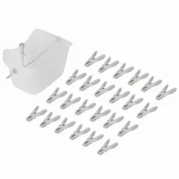 Keep all of your clothes pegs in one convenient place with our handy peg basket. It comes with 24 individual pegs to hang out your washing, with a soft grip design to support heavier garments and cushion your clothes to ensure no markings are left behind once dried. The peg basket features a hanging hook, which can be attached to a washing line, rotary airer or even an indoor airer. High-quality spring mechanisms give the pegs added flexibility and rust-resistance to protect them against weather damage all-year-round. The bucket provides a storage solution for pegs, keeping them organized and easily accessible during laundry tasks. This peg basket offers it all, convenience, organization and protection to your clothing making your laundry routine more efficient and enjoyable.