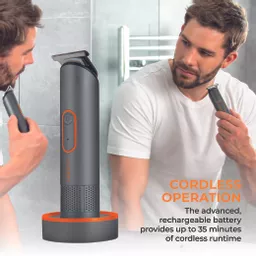 All-in-one kit provides everything you need for a professional cut at home. Includes a precision trimmer to shape your beard, maintain your moustache and sculpt your sideburns with a superior, even shave; the detail trimmer helps to create chiselled hair lines with added definition around your jaw; with hair clipper to tame unruly hairs before creating your style