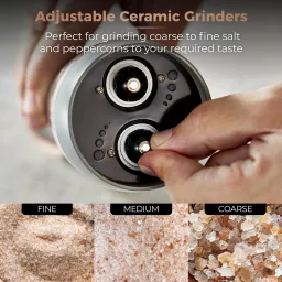Adjustable ceramic grinders from coarse to fineRequires 4 x AA type batteries (not included)