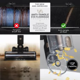Powered by a 250W BLDC motor, the ultra-efficient floorhead expertly agitates dust and dirt to ensure thorough cleaning across carpets and hard floors to leave your entire home looking revitalised