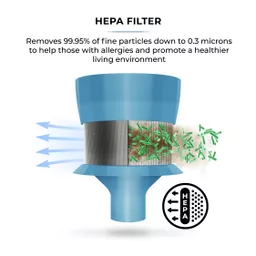 Removes 99.95% of fine particles down to 0.3 microns to help those with allergies and helping to promote a healthier environment to live in