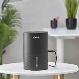 Tower’s 900ml Portable Dehumidifier offers quiet and efficient moisture control for small rooms.
