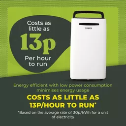 This high-performance dehumidifier from Tower effectively eliminates damp, removes excess moisture in the air and prevents mould forming to promote healthier humidity around the home. The dehumidifier capable of extracting up to 20 litres of moisture a day. Choose between 3 function modes to tackle moisture in the air: protect your home with powerful dehumidifying; set to continuously extract moisture from the environment; dry clothes faster and more effectively. Set your desired humidity level between 30-80% by increments of 5% via the easy-to-use touch panel. The dehumidifier is energy efficient and consumes a low amount of power, with a 24-hour auto-off timer to save more energy and minimise running costs. When the water tank reaches full capacity, the unit will automatically shut off to prevent leaks and spillages.