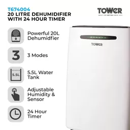 Tower 20 litre Dehumidifier with 24 Hour Timer