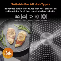 Bonded steel base for even heat distributionSuitable for all hob types including induction