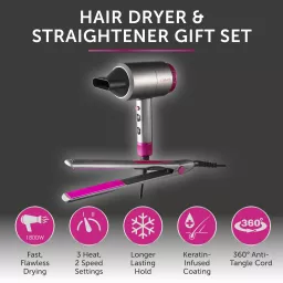 Hair Dryer: H25.7 x W18.1 x D7.9cm / Straightener: H2 x W32 x D3cmPackaging Type: Full colour box