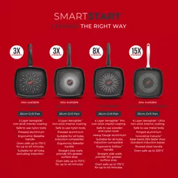 Presenting the innovative SmartStart technology, the 3.5mm forged aluminium grill pan enables you to start cooking like a Pro. Perfectly cook a juicy steak by keeping an eye on the indicator tick in the middle of the pan.