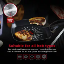 Energy efficient bonded steel base heats up quickly and evenlySuitable for all hob types including induction