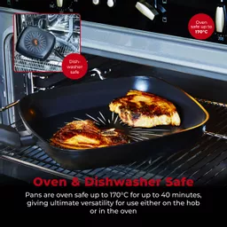 Presenting the innovative SmartStart technology, the 3.5mm forged aluminium grill pan enables you to start cooking like a Pro. Perfectly cook a juicy steak by keeping an eye on the indicator tick in the middle of the pan. When it changes to dark red, the optimum temperature of 200 degrees Celsius has been reached, so it is ready for you to add your ingredients. The 4 layer non-stick Aeroglide Pro interior coating is 8x stronger compared to standard non-stick coating. It's free from PFOA, lead and cadmium allowing you to cook healthy meals without harmful toxins. The grill pan has a Bonded Steel Induction ready base with ergonomic Softtex handle offering a comfortable grip and full manoeuvrability when cooking. It is suitable for all hobs, including induction hobs. It is also dishwasher friendly for low maintenance cleaning, although hand wash is recommended to maintain the quality finish