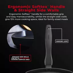 Ergonomic Softtex handle for a cool and comfortable grip and easy manoeuvrability when cooking