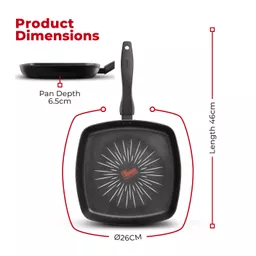 This 26cm grill pan provides enough cooking space for family meals and entertaining, so you can serve up juicy steaks and flavoursome veggie burgers with ease