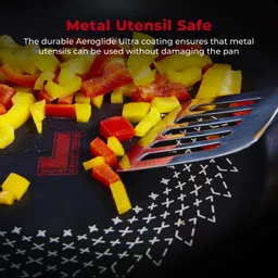 The durable Aeroglide Ultra coating ensures that metal utensils can be used without damaging the grill pan
