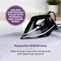 This powerful and stylish 3100W iron heats up rapidly to make short work of ironing, with a precision tapered tip for easy ironing around buttons and hard to reach areas.