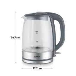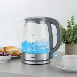 This Tower kettle is presented in a clear glass body with illuminating blue light to add a splash of colour to your kitchen. Featuring a large 1.7L capacity, this kettle allows you to make up to 7 drink from a single fill with minimal time spend waiting for the water to boil. The easy fill lid can be flipped open with the press of a button to easily empty or refill when needed. Designed with a perfect pour spout, the kettle stops water from spilling out of the lid and dampening your services, whilst a max fill line ensures you only use the water that you need every time. Boil dry protection and automatic switch off provide additional safety and peace of mind during use.