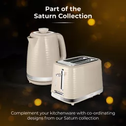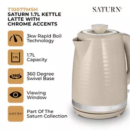 Add a contemporary touch to your kitchen with this Saturn kettle from Tower. It comes with ultra-modern chrome accents and an embossed 3D finish to provide a stunning aesthetic. Its large 1.7L capacity with quick boil function lets you make up to 7 cups in less than a minute.