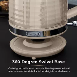 Add a contemporary touch to your kitchen with this Saturn kettle from Tower. It comes with ultra-modern chrome accents and an embossed 3D finish to provide a stunning aesthetic. Its large 1.7L capacity with quick boil function lets you make up to 7 cups in less than a minute. Designed with busy mornings in mind, this kettle is packed with a range of practical features to take the hassle out of drink making. It has quick boil functionality to boil the perfect morning brew in under a minute, while the large 1.7 litre capacity lets you make more drinks in less time. Dual viewing windows allow you to easily monitor the water level and measure the exact amount you need. A pull up removable lid prevents any obstructions getting in your way as you refill, while the 360 degree swivel base makes the kettle more accessible and comfortable to use for both left and right-handed users.