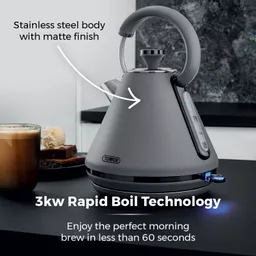 Powerful 3KW rapid boil1.7L capacity makes up to 7 cups from one fill