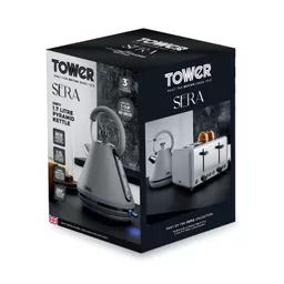 Add contemporary style to your kitchen with this elegant Sera Pyramid Kettle from Tower. It features a matte black finish with a smoked black trim, making it an eye=catching addition to any countertop. Full of modern functionality, it’s powered by rapid boil technology to reduce your wait for a delicious hot drink, boiling 1 cup in less than 60 seconds. A large 1.7L capacity lets you make up to 7 drinks from a single fill, ideal for families and busy households alike. With a detachable filter, you can easily remove and rinse away limescale to keep your coffee and tea tasting its best. The perfect pour spout protects against boiling hot water spillages, while the 360-degree swivel base and fully removable lid make it simple to lift and refill the kettle no matter whether you’re left or right-handed.