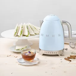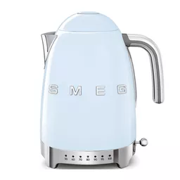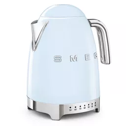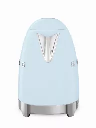 Housed within a curvaceous stainless steel structure, the Smeg kettle reflects both interior and exterior beauty. Its 3kW concealed heating element and removable stainless steel limescale filter reduces the risk of limescale build-up forming and affecting its unrivalled performance. Specifically designed for tea and coffee lovers, the keep warm function and 7 variable temperature options range between 50-100C for a more buildable and customised beverage. The 1.7 litre capacity provides ample space for preparing up to 7 cups of boiled water, with a soft opening lid to make for a simple, single handed refill. Keep a clear view to the contents inside with the water level indicator window, while the intelligent automatic shut off stops operation at 100C. The 360 swivel base features anti-slip feet to secure stability on the kitchen surface. The stainless steel structures are wrapped in a retro inspired black coating, for a combination of durable materials and timeless design.