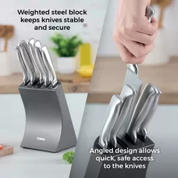 Weighted steel knife block for safe storageAngled design makes it easier to remove knives from block