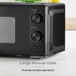 Large manual dials let you easily select your required cooking time and power level for simple fuss-free cooking. A simple push button allows you to open the microwave