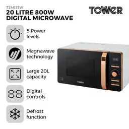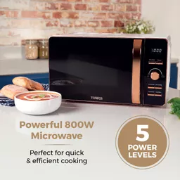 For convenient cooking with added elegance, use Tower’s 800W 20L digital microwave with black & rose gold accents. This trendy microwave is essential for your everyday needs with 8 autocook settings, including milk, rice, auto-reheat & pizzas for your favourite foods at the touch of a button.