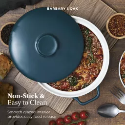 Crafted from strong stoneware, the casserole is resistant to cracks, chips and scratches for long-lasting quality – ideal for everyday use and special occasions alike. It can also withstand heats up to 240°C for fuss-free cooking.