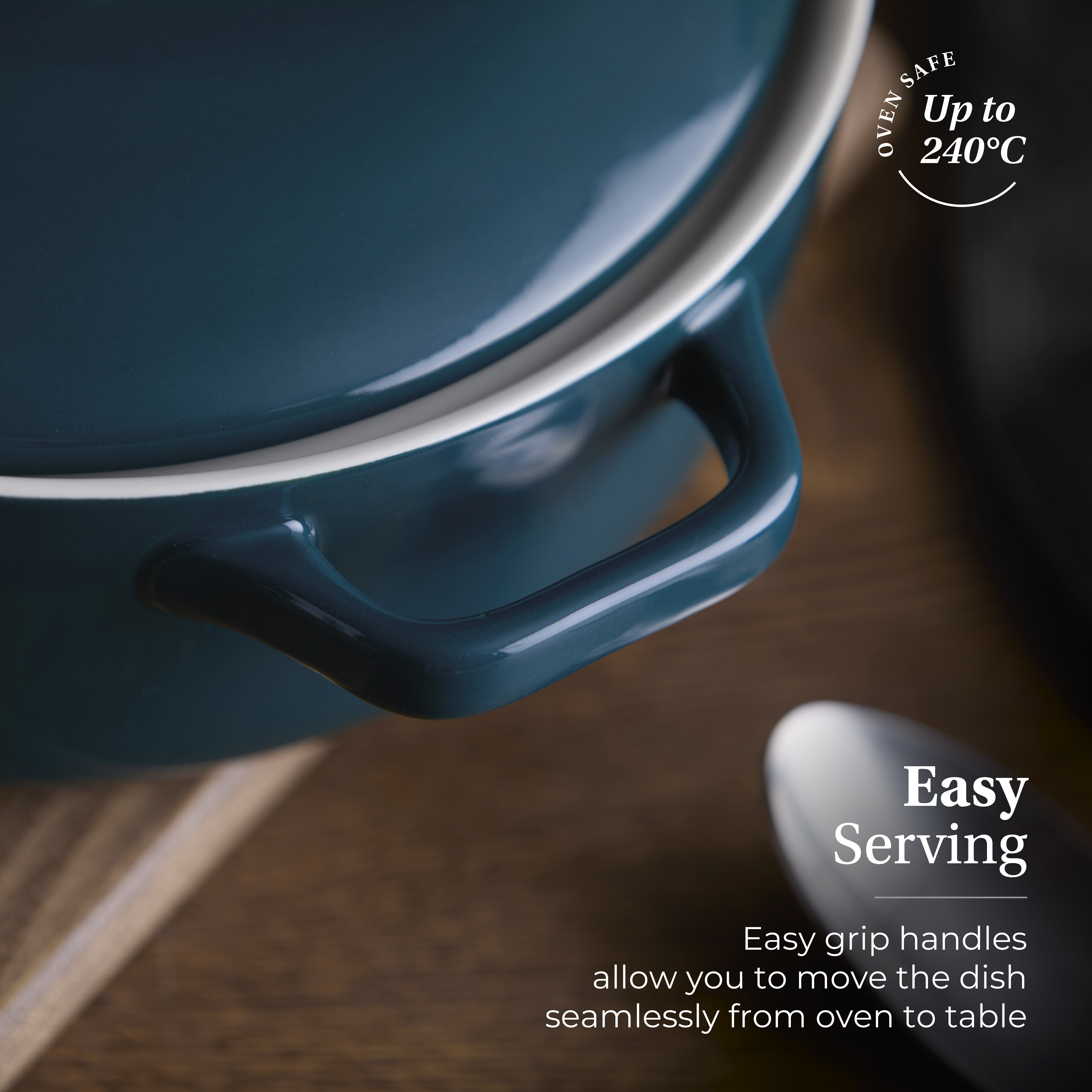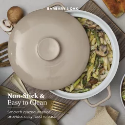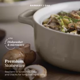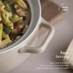 Crafted from strong stoneware, the casserole is resistant to cracks, chips and scratches for long-lasting quality – ideal for everyday use and special occasions alike. It can also withstand heats up to 240°C for fuss-free cooking.