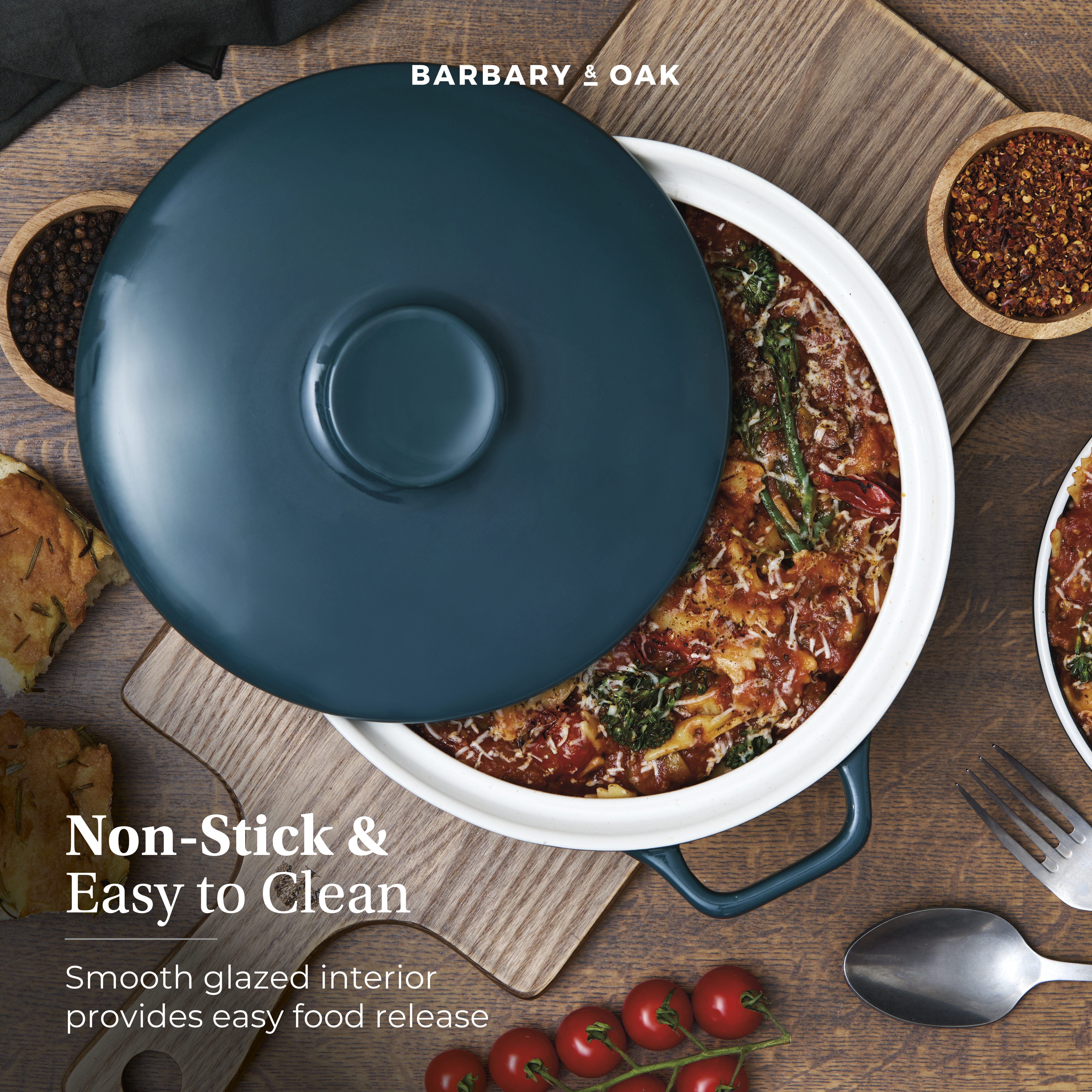 Easy grip handles for comfortable oven to table servingEven heat distribution and retention evenly cooks