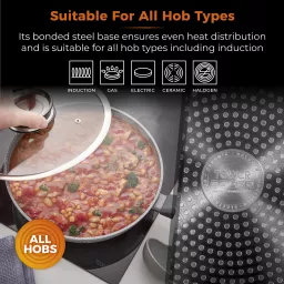 Provides even heat distribution for better cooking results and is suitable for all hob types