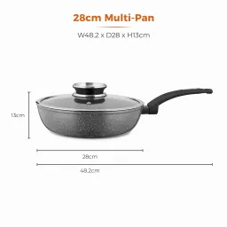 Create a wide range of delicious dishes with this Tower multi-pan. Featuring a superior Cerastone non-stick coating, little to no oil is required for healthier cooking and easy cleaning. With thick forged aluminium bodies in a lightweight design, this multi-pan offers all the benefits of enhanced durability whilst also enabling easy manoeuvrability around your kitchen, suitable for all users. The 28cm diameter makes it ideal for solo or family cooking, while the silicone soft touch handles offer comfort and control during use.