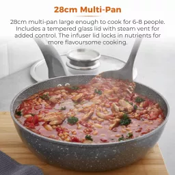 An infuser lid is also included, which helps lock in and add extra flavour to your cooking for a better mealtime. Suitable for all hobs including induction, this pan requires only a simple hand wash to maintain its optimum performance. This Tower multi-pan comes with a total of 5 years warranty, which provides added peace of mind in the event of a fault.