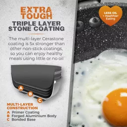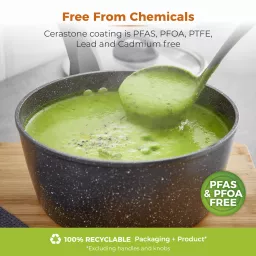 The multi-layer Cerastone coating is 5x stronger than other non-stick coatings, and is PFAS, lead and cadmium-free so you can enjoy healthy meals using little or no oil