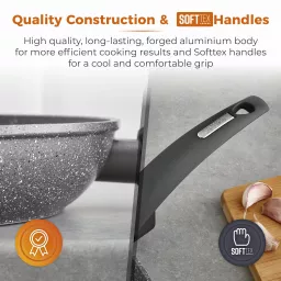 Each pan is crafted with a high quality, long-lasting forged aluminium body that enables quick and easy adjustment of temperatures for more efficient cooking results, with no hot spots