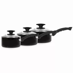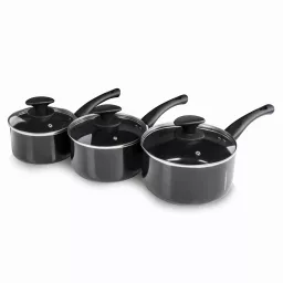 16/18/20cm 3pce saucepan set with glass lidsMade from high quality pressed aluminium